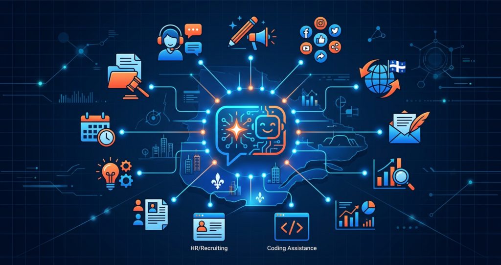 Douze cas d’usage pratiques de ChatGPT pour PME québécoises avec prompts à copier-coller. Mettez en place l’IA immédiatement.